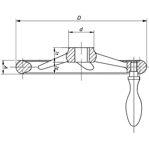- Handrad mit 3 Speichen (bis Ø 200 mm) und 5 Speichen (ab Ø 225 mm).