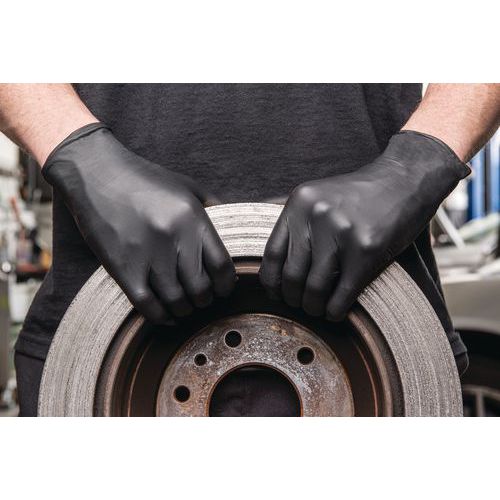 Die schwarze Farbe der MICROFLEX® 93-852-Untersuchungshandschuhe verdeckt Schmutz und verbessert die Sichtbarkeit von hellen Objekten
