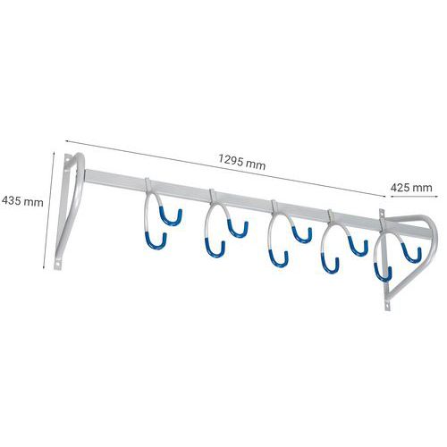 | Produktname | Hänge-Wandhalterung für Fahrräder - 5 Stellplätze - Manutan Expert, Gesamtlänge: 1295 mm, Anzahl Plätze: 5 |