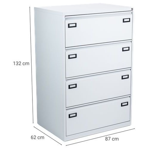 Aktenschrank mit Schubladen für Hängeregister Dank der Kippsicherung können Sie immer nur eine Schublade öffnen Der Griff über die gesamte Vorderseite bietet Ihnen jederzeit eine sichere Handhabung Dieser robuste Aufbewahrungsschrank erleichtert die Organisation Ihrer Akten Consigli di sicurezza: - installare il mobile su una superficie piana - fissarlo su una parete o parete divisoria con un fissaggio adeguato - assicurarsi di non superare il carico massimo consigliato e la sua buona distribuzione Kundengarantie : 10 Jahre