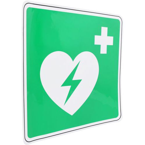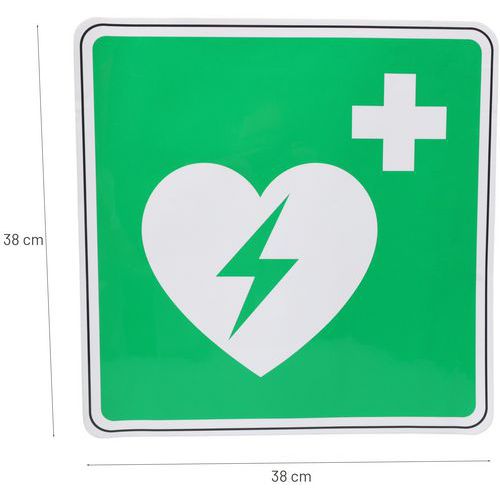 - Mit diesem Hinweisschild ermöglichen Sie Rettungsmaßnahmen innerhalb kürzester Zeit, da der Ort eines Defibrillators deutlich ausgewiesen ist