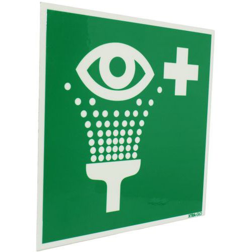 | Produktname | Hinweisschild, nachleuchtend - „Augendusche“, Selbstklebend: nein, Starr: ja, Paneel Form: Quadrat |