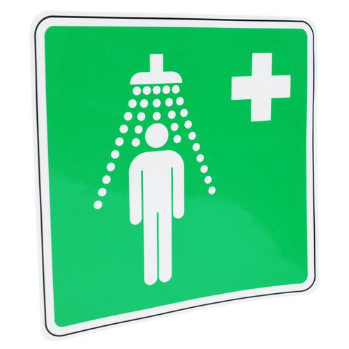 Mit diesem Piktogramm weisen Sie Ihre Mitarbeiter und die Öffentlichkeit darauf hin, dass eine Notdusche vorhanden ist, und reduzieren so die Zeit für Notfallinterventionen