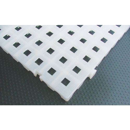 Einfacher Zusammenbau durch Ineinanderstecken Hochfeste Gittermatte, die dank ihrer dicken Struktur gegen nasse oder fettige Böden isoliert sind Beständig gegenüber extremer Kälte und Hitze bis 70 °C Bei extremen Temperaturen kann die Größe leicht variieren Einfache Wartung Aus linearem Polyethylen niedriger Dichte (PEBDL)