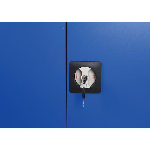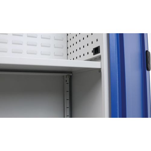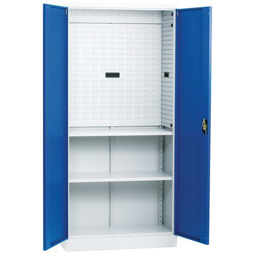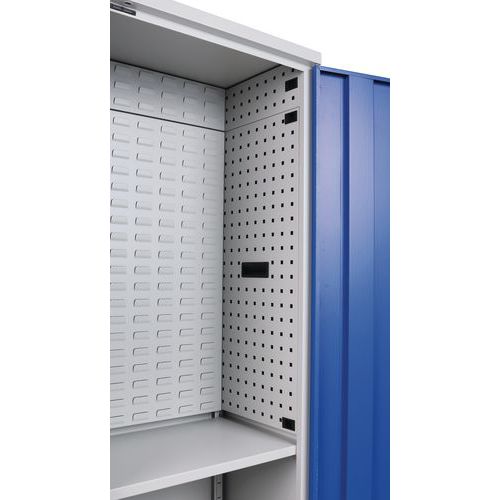 Inhalt: Werkzeugschrank mit Garderobenschloss, 1 Hauptschlüssel und 2 Nachschlüsseln, Lochplatte.