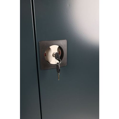 - Der Schrank mit doppelten Flügeltüren ist mit dem im Drehgriff integrierten Schloss sicher verschließbar