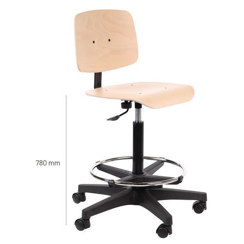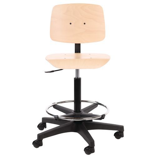 | Produktname | Hoher Werkstattstuhl, Typ Unterseite: Zentrale, Sitz Material: Multiplexplatte, Rückenlehne: ja |