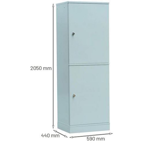 | Produktname | Hoher Werkzeugschrank - 2 Türen, Max. Belastung: 30 kg, Gesamthöhe: 2050 mm, Gesamtbreite: 590 mm |