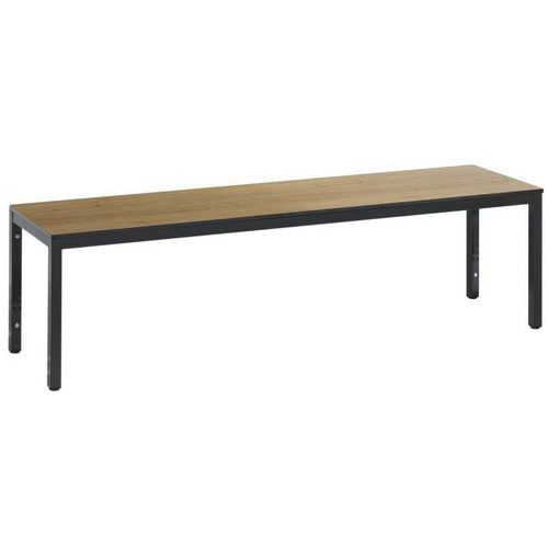 Einfache Garderobenbank, solide Konstruktion, je nach Modell mit und ohne Schuhablage Sehr schöne Ausführung mit Massivholzverkleidung: Sitzfläche aus überaus feuchtigkeitsbeständigem HPL Bank mit Stellfüßen und Schutzkufen, zwecks Höhenausgleich einstellbar (10 mm) Struttura in tubo di acciaio sezione 30 x 30 mm. Rivestimento sedile in HPL, spessore 13 mm. Modello con scarpiera: struttura zincata per elettrolisi.