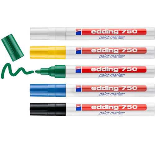 | Produktname | Hülle mit 5 Lackmarkern, Farbe: Gemischt, Modell: Edding 750, Typ Spitze: Spitz, Typ: Marker, Ø: 15 mm |