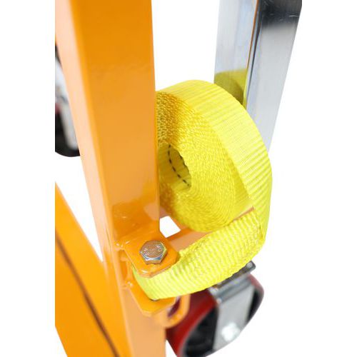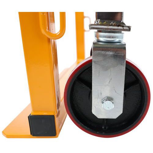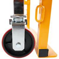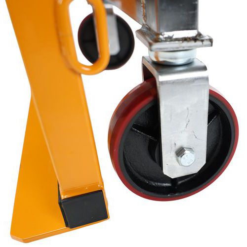 Schaufel mit manueller Hubfunktion, Steuerung über eine hydraulische Pumpe, Hubhöhe: 250 mm, Band aus Gummi-Schaumstoff zum Schutz der beförderten Ware Zwei tragende und steuerbare Lenkrollen für schwere Lasten Hubfunktion: Räder mit Polyurethan-Bereifung Radbreite: 40 mm