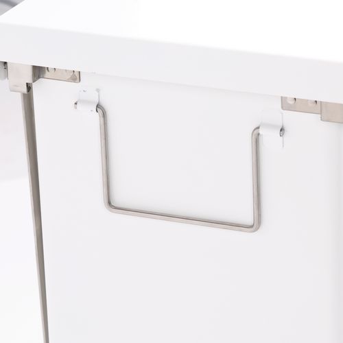 Dieser weiße, robuste Abfallbehälter lässt sich per Pedal öffnen und ist sowohl feuer- als auch...