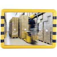 Industriespiegel mit gelb-schwarzen Reflektorrändern zur Erhöhung der Aufmerksamkeit. Klare und deutliche Sicht dank der Herstellung aus Acryl. Hervorragende Bildrückgabe ohne Verzerrung durch rückseitig aufgebrachte Metallisierung. Größtenteils aus Acryl gefertigt, stoßfester als Glas. UV-beständig.