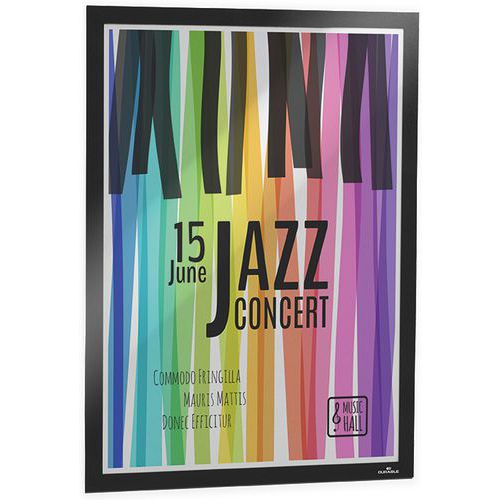 Selbstklebende Aushanglösung, schön und zweckmäßig zugleich, um Ihre Aushänge zur Geltung zu bringen und einfach zu wechseln Kann in Innenräumen an allen glatten, starren Oberflächen sowie auf Glasflächen, die direktem Sonnenlicht ausgesetzt sind, befestigt werden, beständig gegenüber Temperaturen von 70 °C Einfach zu verwendender Info-Rahmen Duraframe® Poster: Um ein Dokument einzufügen bzw. zu aktualisieren, muss lediglich der Rahmen seitlich geöffnet werden, was dank der Magnetbänder wenig Zeit in Anspruch nimmt Auf Glasflächen kann sowohl die Vorder- als auch die Rückseite präsentiert werden Klebende Rückseite, die sich leicht anbringen und wieder lösen lässt, sodass Sie Ihren Rahmen in Sekundenschnelle und ohne Spuren zu hinterlassen neu positionieren können