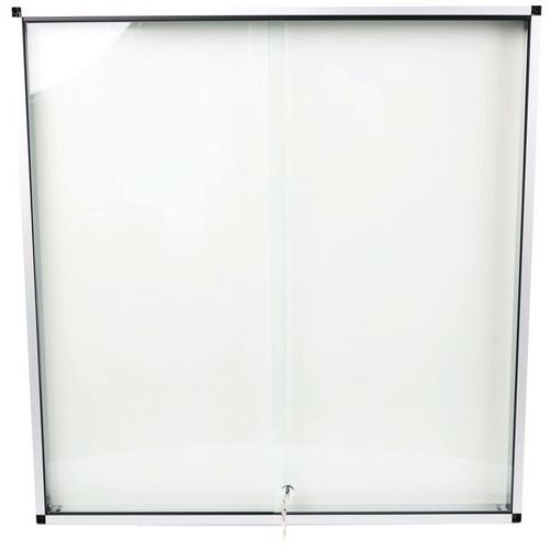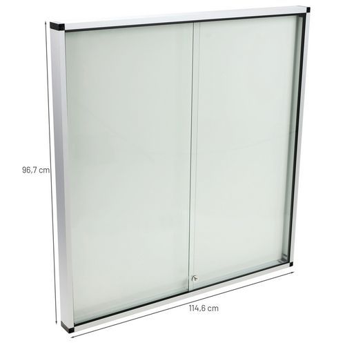 Robuste, sichere und leichte Innenvitrine. Magnetische Oberfläche aus lackiertem Stahl für das Aushängen Ihrer Dokumente mit Magneten. Transparente, abschließbare Schiebetür mit ausgezeichneter Sichtbarkeit der ausgehängten Unterlagen. Glasvitrine, um 5 mm verstärkt für noch mehr Sicherheit Abschließbar, 2 Schlüssel im Lieferumfang enthalten