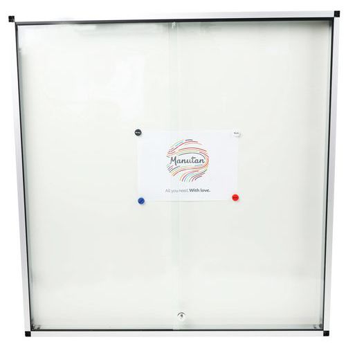 Robuste, sichere und leichte Innenvitrine. Magnetische Oberfläche aus lackiertem Stahl für das Aushängen Ihrer Dokumente mit Magneten. Transparente, abschließbare Schiebetür mit ausgezeichneter Sichtbarkeit der ausgehängten Unterlagen. Glasvitrine, um 5 mm verstärkt für noch mehr Sicherheit Abschließbar, 2 Schlüssel im Lieferumfang enthalten Hergestellt in der EU Kundengarantie : 10 Jahre