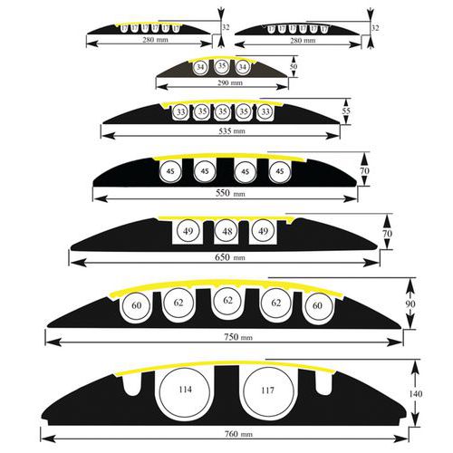 - Kabelbrücke BOA mit Basis (schwarz) und Abdeckung (gelb) aus Polyurethan.
