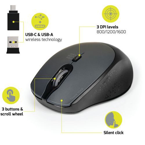 | Produktname | Kabellose Maus Pro, leise, schwarz - Port Connect, Typ Sensor: Optische, Typ Scrollrads: Scrollrad |