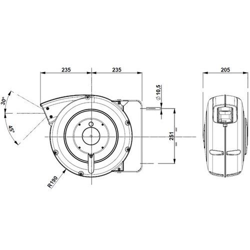 - Kabelrolle mit Aufrollautomatik und Erdungsklemme.