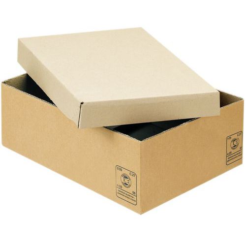 Gute Stabilität beim Stapeln. Karton ohne Klappe. Perfekter Halt der Klebebänder. Berstfestigkeit. Format für Palettierung geeignet. Anwendungsbereiche: alle Branchen, einschließlich der Automobilbranche.