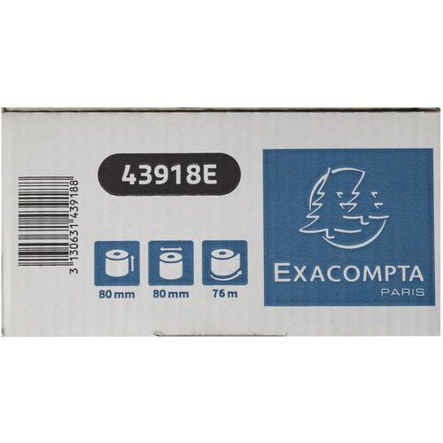 | Produktname | Kassenrolle – Exacompta, Typ: Rolle, Grammatur: 52 g/m², Länge Blatt: 76 m, Breite Blatt: 80 mm |