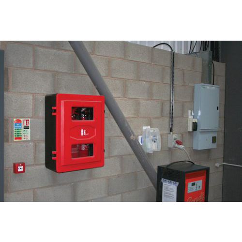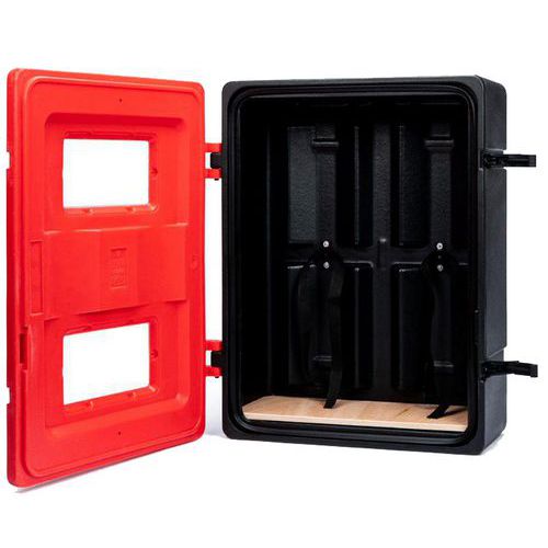 | Produktname | Kasten für 2 Feuerlöscher, Werkstoff: High density polyethylen, Farbe: Rot/schwarz, Für Löscher Gewicht: 6 kg |