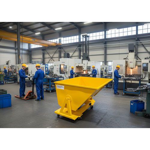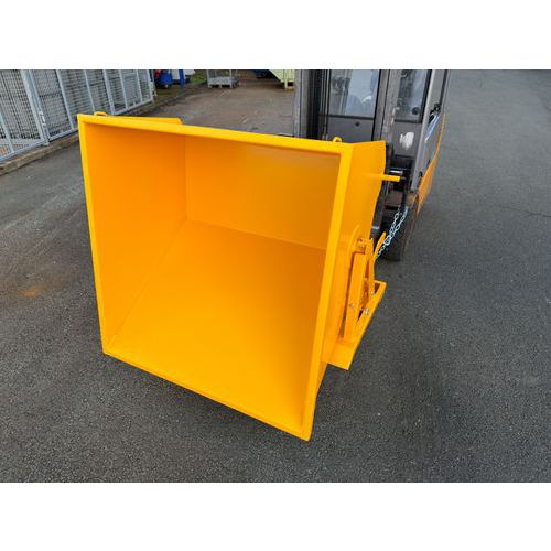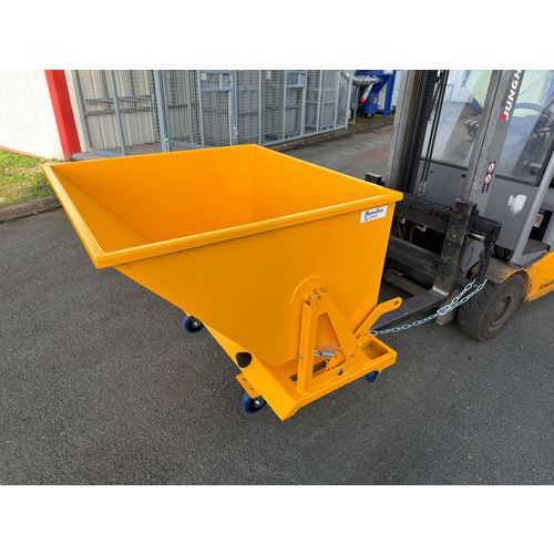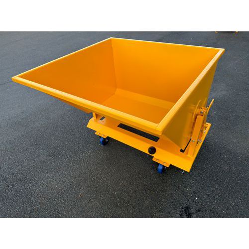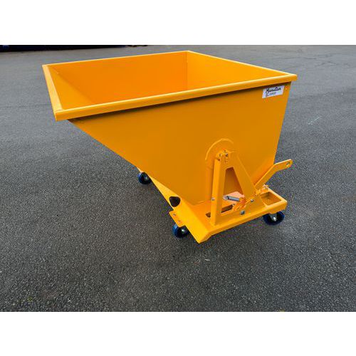Kippbehälter mit Bodenentleerung, nutzbar mit oder ohne Hubwagen Manuelle Auslösung über Hebel Austauschbare Version mit oder ohne Räder Geringer Platzbedarf. Praktisch für kleine Volumina