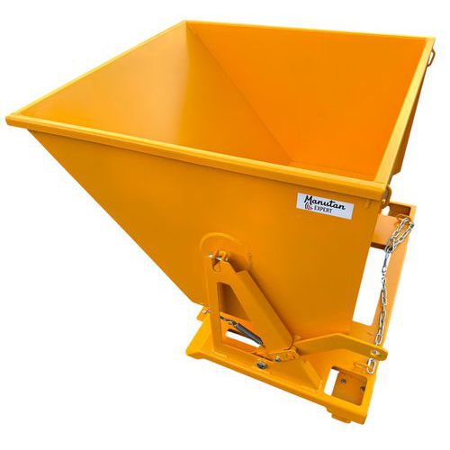 Kippbehälter mit Bodenentleerung, nutzbar mit oder ohne Hubwagen Manuelle Auslösung über Hebel Austauschbare Version mit oder ohne Räder Geringer Platzbedarf. Praktisch für kleine Volumina