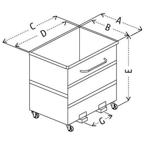 Stapelbarer Kippcontainer für Gabelstapler mit Drehgerät.
