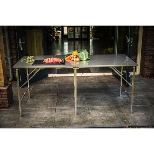 | Produktname | Klappbarer Vorbereitungstisch Solid200, Breite: 200 cm, Tiefe: 80 cm, Höhe: 90 cm, Max. Belastung: 100 kg |