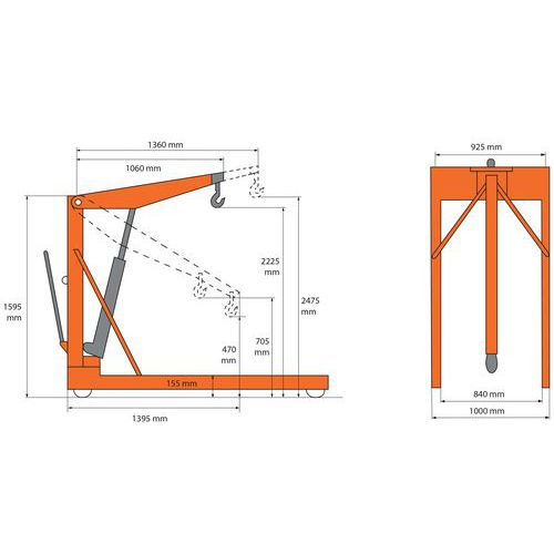 Klappbarer Werkstattkran - Tragkraft 500 kg und 1000 kg