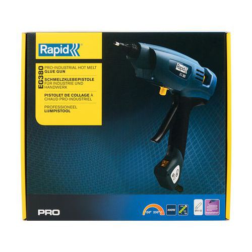 | Produktname | Klebepistole EG380 - Hoher Durchsatz 2.200 g/h, Profi-Gebrauch - Rapid, Für Klebestift Ø: 12 mm |