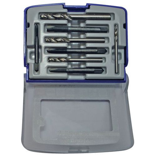 | Produktname | Koffer: Bohrer HSS und Gewindeschneider „Gun“, Stückzahl: 8, Werkstoff: Stahl, Typ Stütz: Kunststoff |