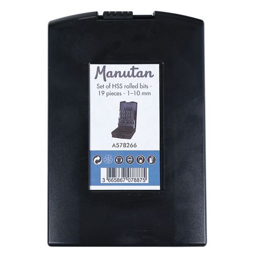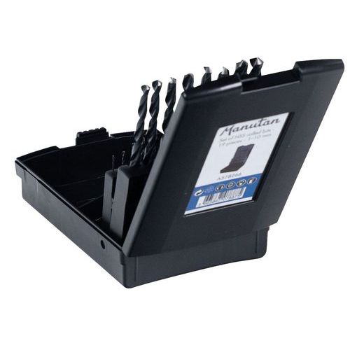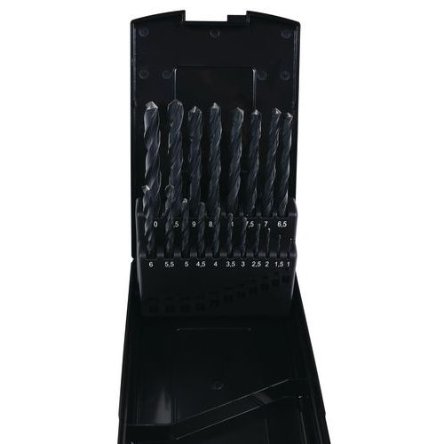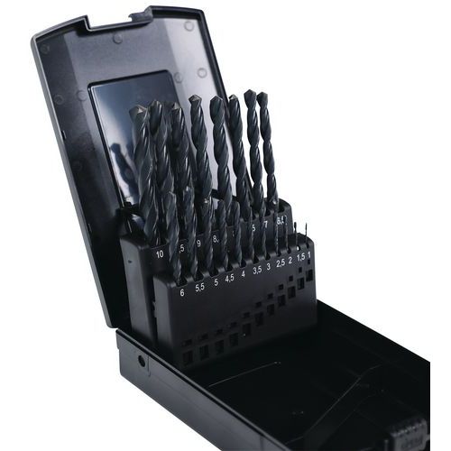 Koffer mit 19 Standardbohraufsätzen mit zylinderförmigem Schaft, gewalzt, aus Schnellarbeitsstahl HSS, Ø 1 bis 1 mm