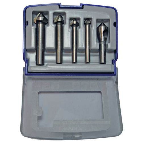 | Produktname | Koffer: Senk- und Entgratfräser 90°, Stückzahl: 5, Werkstoff: Stahl, Typ Stütz: Kunststoff |