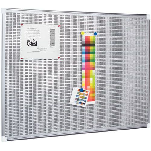 - Tafel bestehend aus einer grauen Korktafel mit einer magnetischen Metallplatte.