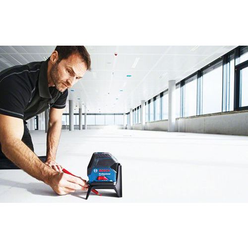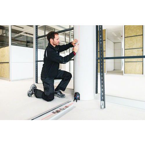 - Horizontale und vertikale Laserlinien sowie zwei zentrierte Lotpunkte mit optimaler Sichtbarkeit.