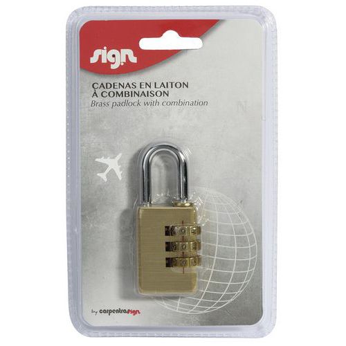 | Produktname | Kombinationsschloss aus Messing - Sign, Bügel Ø: 0.5 mm, Anzahl Drehscheiben: 3 |