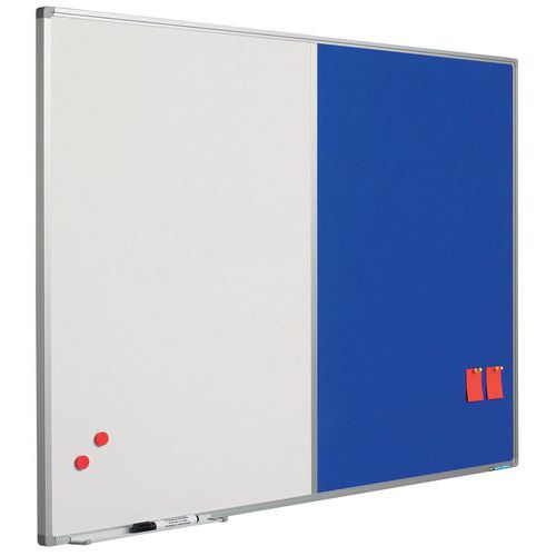 - Kombi-Funktion: Whiteboard aus emailliertem Stahl und Textilpinnwand in Einem.