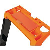 - Die Trittleiter ist mit einem Werkzeughalter mit integriertem Verschluss ausgestattet.