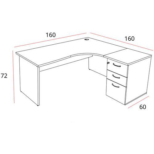 Kompakter Schreibtisch mit Container, Typ Unterseite: Platte, Montage: Zum Aufbauen, Gesamtbreite: 160 cm