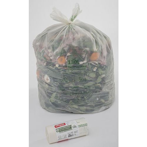 | Produktname | Kompostierbarer Müllsack, 130 L, für Biomüll - Alfapac, Gesamtinhalt: 130 L, Stärke: 32 µm, Höhe: 1150 mm |