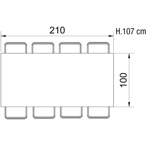 | Produktname | Konferenztisch Greko 210 x 100 cm, Typ Unterseite: Zentrale, Höhe: 107 cm, Breite: 210 cm, Form: Rechteck |