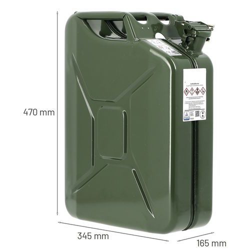 | Produktname | Kraftstoffkanister, Gesamtinhalt: 20 L, Farbe: Grün, Typ: Kraftstoff, Länge: 345 mm, Breite: 165 mm |