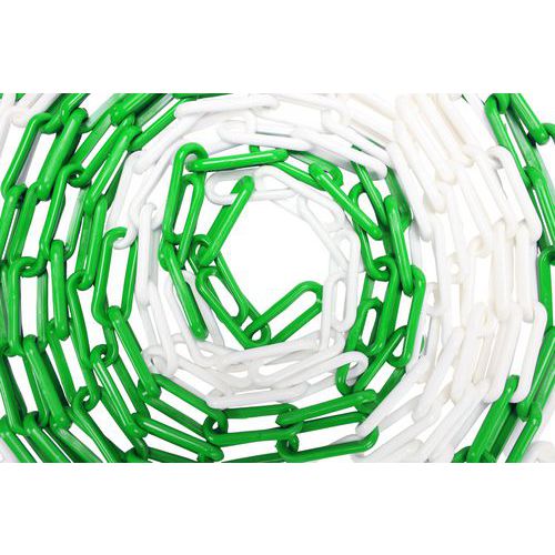 | Produktname | Kunststoffkette im Beutel – weiß/grün, Länge: 2500 cm, Materialien: Polyethylen, Farbe: Grün/weiß |