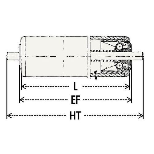 Geeignet für Schwerkraftförderer. Müheloser und geräuscharmer Transport. Endstücke aus Polypropylen mit Kugelkäfigen aus Stahl. Federnde Schiebeachse.