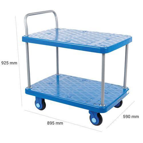 | Produktname | Kunststoffwagen mit 2 Böden, Max. Belastung: 300 kg, Gesamthöhe: 925 mm, Gesamtbreite: 590 mm |