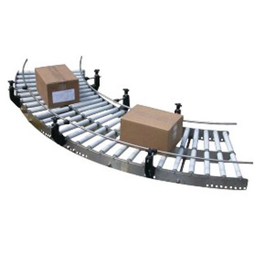 Kurvenelement für Schwerkraftförderer aus Edelstahl mit PVC-Rollen.