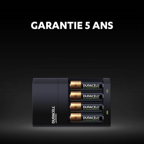 Das Hi-Speed-Batterieladegerät wird mit 5-Jahres-Garantie von Duracell geliefert
