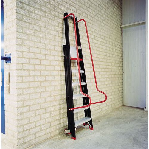 - Leicht zu transportierende Lagerleiter dank Bockrollen hinten.